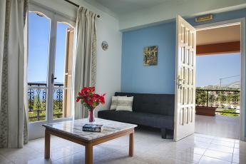 Polymnia I has the top floor apartment and the ground floor studios.